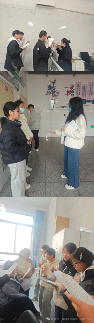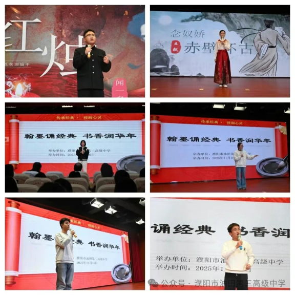 自活动启动以来,学校领导高度关注,师生积极响应、热情投入。同学们以语文教材为依托,精选《短歌行》《梦游天姥吟留别》《琵琶行(并序)》《念奴娇·赤壁怀古》《永遇乐·京口北固亭怀古》《声声慢》《沁园春·长沙》《红烛》等经典篇目,利用课余时间组队排练,细磨发音、反复吟诵、深入揣摩诗情。教室里、走廊间,处处可见同学们专注排练的身影。