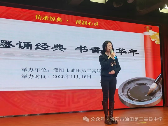 为深入贯彻立德树人根本任务,弘扬中华优秀传统文化,提升学生人文素养,11月16日晚,濮阳市油田第三高级中学“翰墨颂经典,书香润华年”经典诗词朗诵活动在学校大会议室成功举办。党委办公室主任淮光金、校团委书记李晓亮、教工第三党支部书记兼高一年级级部主任姜英朝,语文教师涂嘉慧、胡欣雨、朱琳、张会会出席并担任评委,涂嘉慧担任活动主持人。
