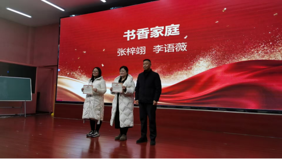 接着学校对整本书阅读活动中组织得力、活动开展扎实有效的优秀教师和学生及书香家庭颁发证书予以表彰,对老师们的贡献和家长的支持予以肯定。