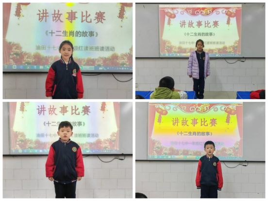 最热闹的当属十二生肖讲故事比赛,小选手们自信登台,有的讲《猫和老鼠抢第一》的有趣情节,有的说《兔子和龙》的暖心片段,有的演《贪吃猪》的可爱模样。他们声音洪亮,表情灵动,用童真的语言把生肖故事讲得绘声绘色。
