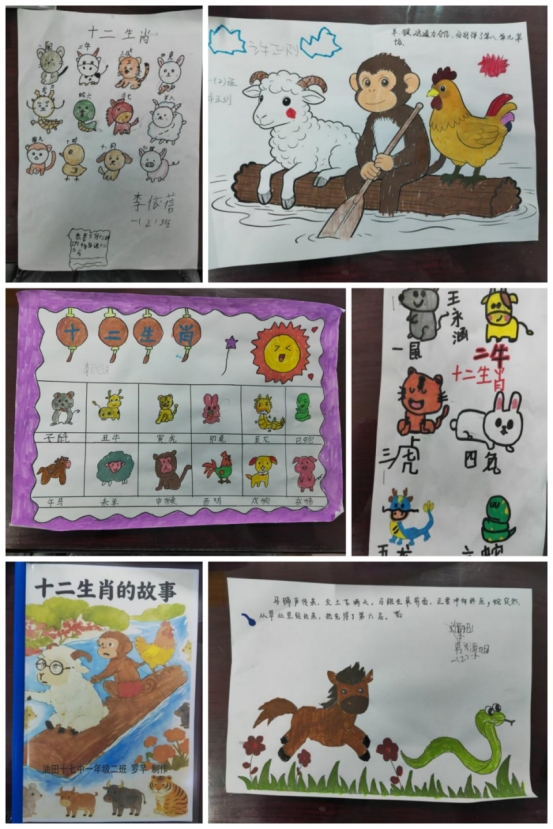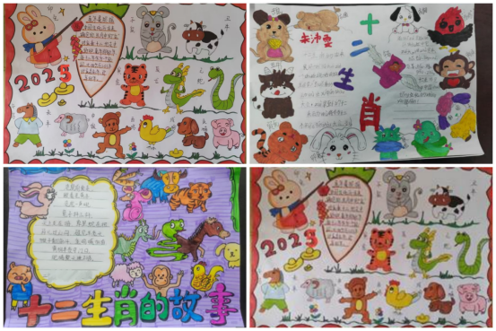 为让阅读更有乐趣,一系列贴合一年级孩子特点的趣味活动接连开展,人人参与,个个出彩。读书小报制作中,孩子们用彩笔绘出可爱的生肖形象,用稚嫩的字迹写下简单的故事感悟,色彩斑斓的小报上,老虎威风凛凛,兔子乖巧可爱,每一笔都藏着童真与喜爱;读书卡DIY环节,小小的卡片上,孩子们认真写下生肖名字、故事关键词,一张张精致的读书卡,成为孩子们阅读路上的小小勋章。