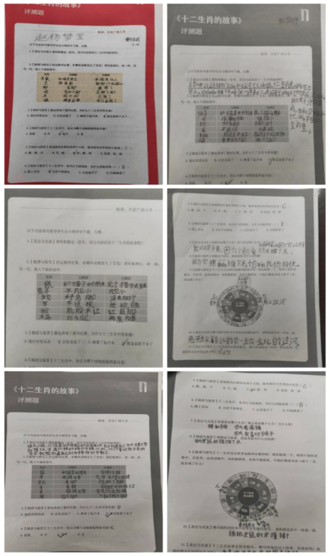 活动伊始,师生共读拉开帷幕。课堂上,老师带着孩子们打开《十二生肖的故事》,走进十二生肖的奇妙天地,用生动的语言讲述一个个趣味传说,从机灵的子鼠到憨厚的亥猪,每一个生肖故事都引得孩子们目不转睛;课下,孩子们围在老师身边,分享自己喜欢的生肖小故事,你说我听,我讲你笑,师生同读、同伴共读,让《十二生肖的故事》成为班级里最温暖的阅读时光,也让传统文化悄悄住进孩子们的心里。