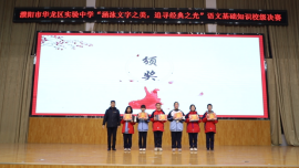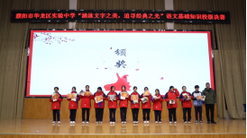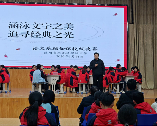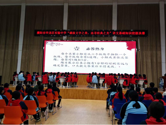 为响应党和国家号召,激发学生对经典文学的热爱,提升语言文字运用能力,华龙区实验中学于1月14日在校体育馆隆重举行“涵泳文字之美,追寻经典之光”语文基础知识大赛决赛,来自七、八年级的36位同学在体育馆舞台上各显神通,为我们呈现了一场精彩纷呈的语言文字盛宴。