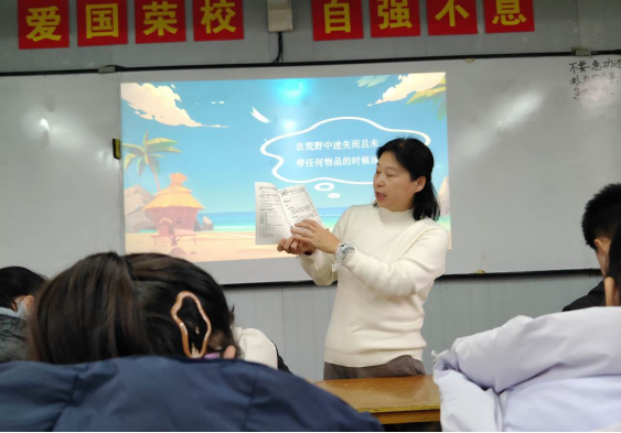 近日,濮阳市油田第十七中学六年级继续开展“红读班班读·同读一本书”主题活动,阅读的书目是《鲁滨逊漂流记》。全体学生在老师的引导下,沉浸式阅读这部经典著作,在书香中感悟坚韧品格,在交流中提升阅读能力。