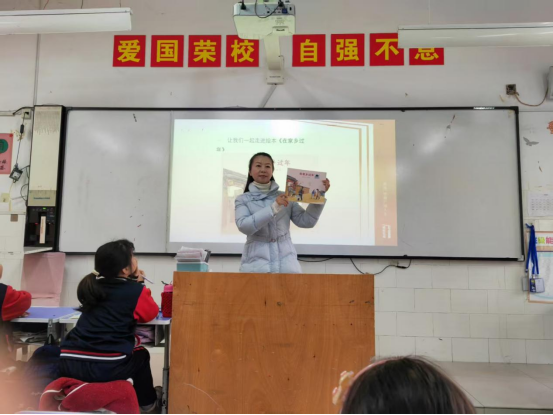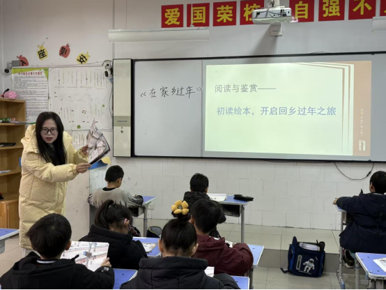 课堂上的师生共读环节超有氛围!语文老师们结合一年级孩子的认知特点,用生动的语调朗读绘本,还拿着插图引导大家观察:“家乡的年夜饭有哪些特色?”“贴春联时要注意什么呀?”孩子们听得入神,小手指着书页跟着轻声跟读,遇到不懂的地方立刻举手提问,老师耐心点拨讲解,帮大家读懂文字里的年味与亲情。