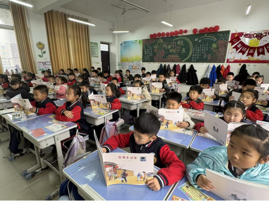 在教室阅读环节,每个孩子都手捧《在家乡过年》绘本,沉浸在阅读的世界里。镜头捕捉到了许多动人画面: