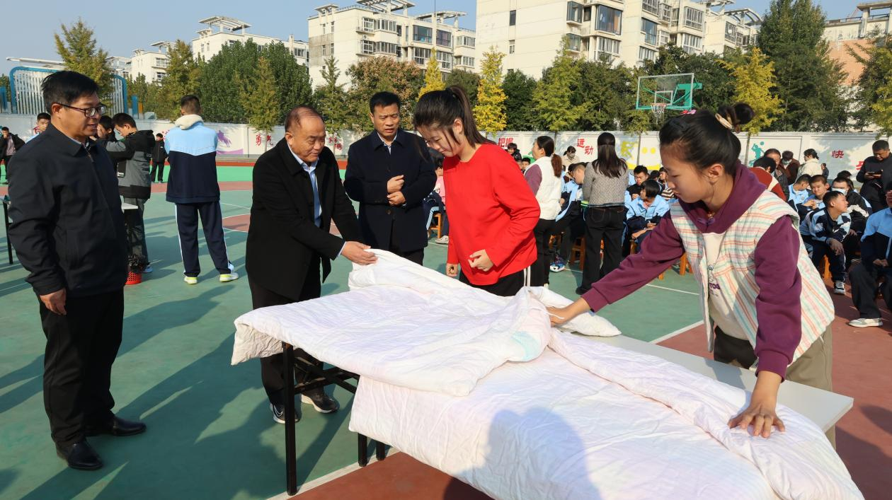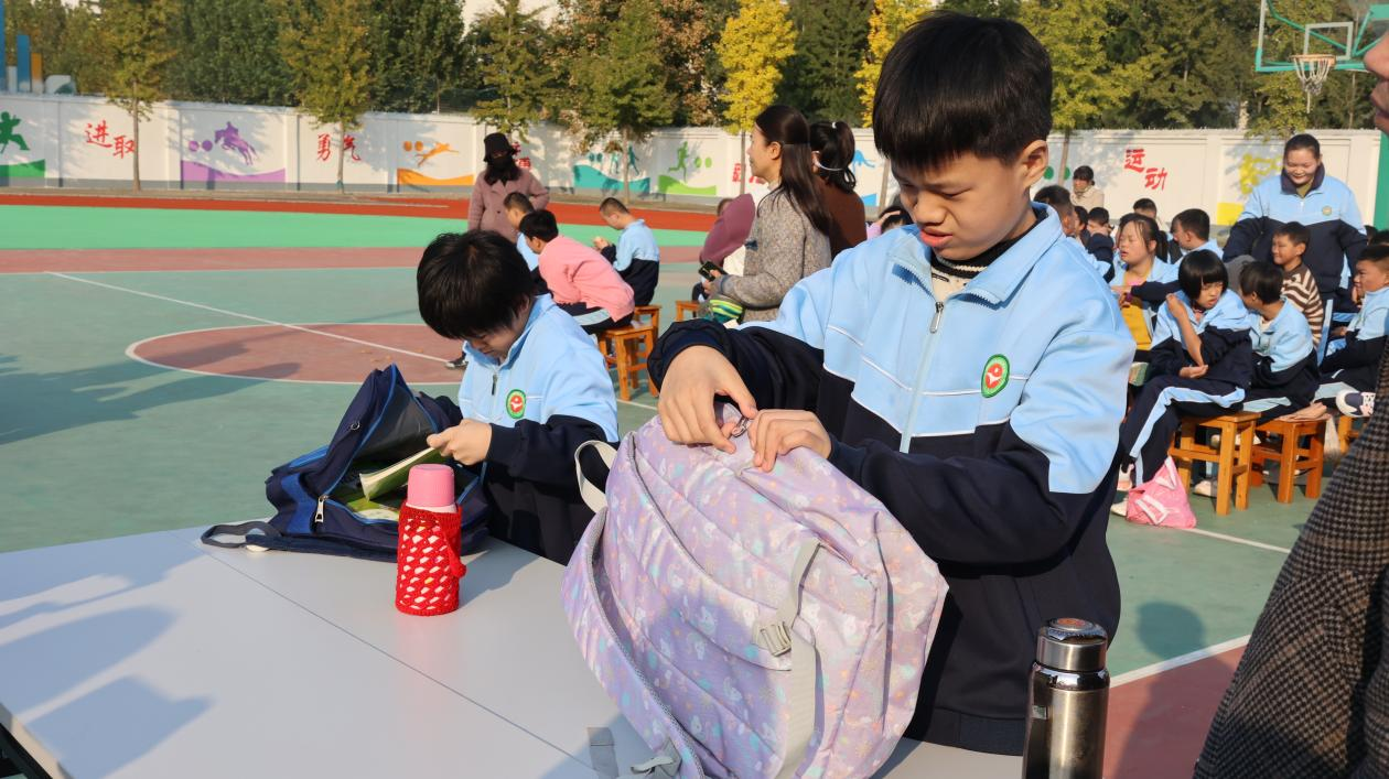 中年级段的整理书包、叠被子、叠衣物展示更是令人眼前一亮。同学们按照要求,将课本、作业本、文具盒分类整理进书包,动作麻利;叠被子时,他们仔细抚平被角,将被子叠得方方正正;折叠衣物时,对照示范图认真操作,叠好的校服整齐摆放,尽显自律与细致。