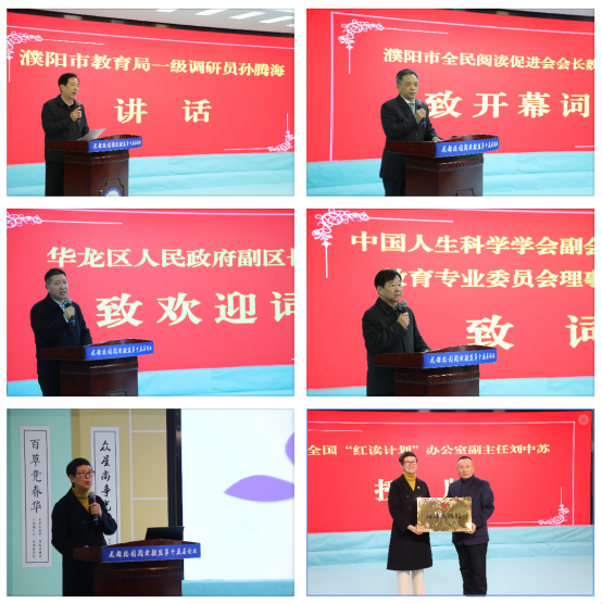 论坛开幕式由濮阳市教育局一级调研员孙腾海主持。濮阳市全民阅读促进会会长魏胜先致开幕词,华龙区人民政府副区长海军致欢迎辞。中国人生科学学会副会长聂延军发表致辞,表达了对阅读教育深入推进的期待。濮阳市油田第五小学党支部书记、校长王世燕作主旨报告,分享了学校在推动阅读教育、赋能学生多元成长方面的实践与思考。