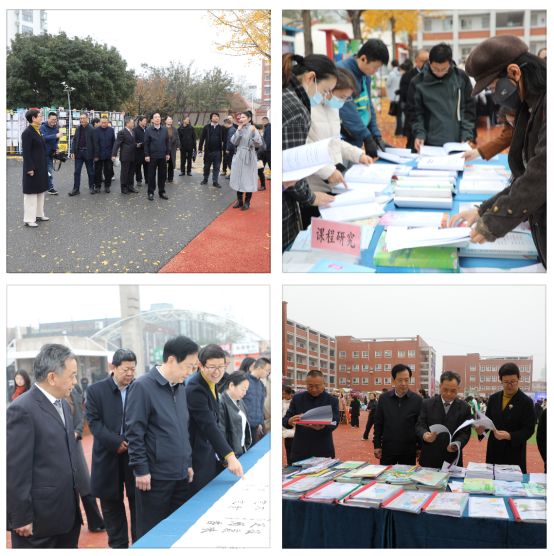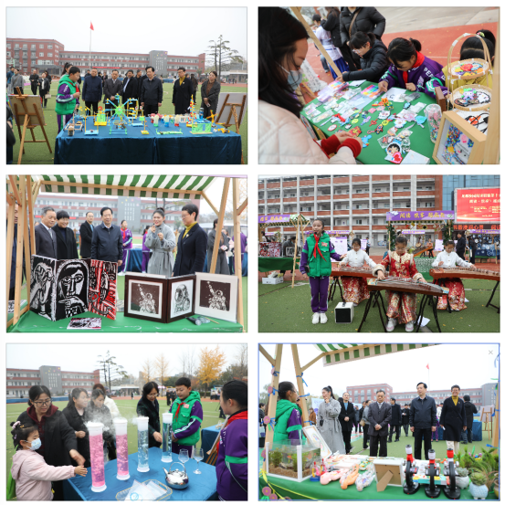 在书香校园资料展示区,嘉宾们认真翻阅了师生共同整理的阅读成果材料,对学校持续推进书香校园建设的扎实工作给予高度认可。互动体验区更是热闹纷呈,葫芦丝、漆扇、中阮、蓝印花、糖画、古筝、木工坊、AI像素画、魔方、生物科学、纸桥承重、电磁小火车等二十余个特色摊位,融合了传统文化与现代科技,诠释着全科阅读的有效成果。领导们与师生亲切交流,亲身体验实践的魅力,感受学校“五育并举”的育人成果。外场活动尾声,嘉宾共同欣赏了由师生联袂演绎的节目《诗词之美》,在朗朗诗声与童真表演中,领略经典文化的永恒魅力,也为后续的正式论坛营造了浓厚的文化氛围。