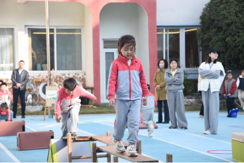 楼顶户外游戏区再现 “猫抓老鼠”“跳皮筋”“城门城门几张高” 等经典民间游戏,幼儿的欢笑声与家长的回忆共鸣交织,让传统游戏成为连接两代人童年的文化纽带。