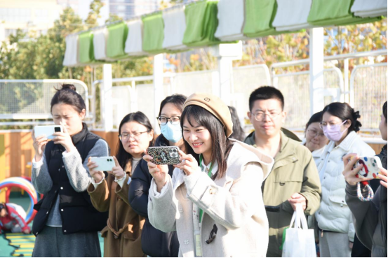 在带队教师引导下,家长分组深入各游戏区域,近距离感受幼儿的活力与潜能。