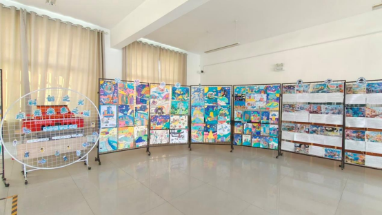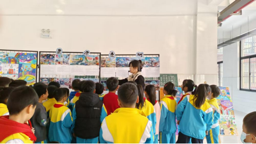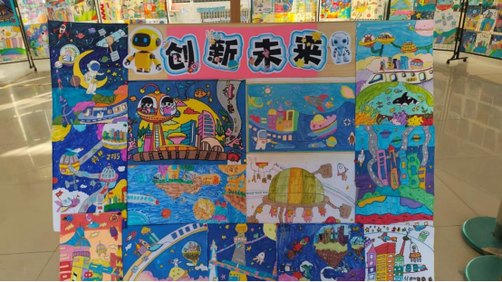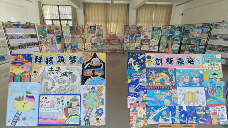 展厅布置完成后,各年级科学教师利用课堂时间带领学生进行了参观。学生们排着整齐的队伍,怀着好奇和兴奋的心情走进展厅。他们在一幅幅作品前驻足观看,不时发出赞叹声和讨论声。有的学生指着绘画作品说:“这个未来城市好漂亮啊,我希望以后真的能住在这样的城市里。”有的学生对AI制作图片感到好奇,纷纷询问老师是如何用AI生成这些图片的。在参观写作作品时,学生们认真阅读每一篇文章,对作者提出的创意解决方案表示赞赏。许多学生表示,以后要努力学习科学知识,将来为未来城市的建设贡献自己的力量。