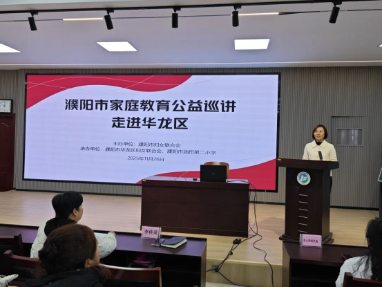 为助力家长科学育儿、深化家校共育合力,11月26日上午,濮阳市油田第二小学教育集团联合市、区妇联,开展家庭教育公益巡讲活动。华龙区妇联党组成员、副主席王晓珍,濮阳市油田第二小学教育集团党支部书记、校长李桂荣出席活动,来自华龙区的基层妇联干部、“爱心妈妈”代表及家长代表共计160余人,共同解锁科学育儿的“密码”,本次活动由学生成长研究中心主任蔡鲁博主持。