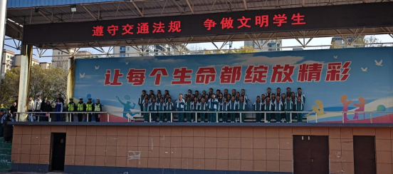 12月1日,濮阳市第八中学在操场隆重举行“遵守交通法规,争做文明学生”主题升旗仪式。这是学校以全国文明校园建设为总揽、助力濮阳“全国文明城市”巩固提升的又一铿锵号角,也是一堂“行走的大思政课”。
