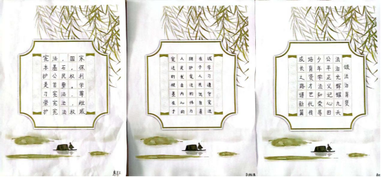 为让宪法知识入脑入心,学校组织开展“法治伴我行”主题作品创作活动。同学们踊跃参与,以画笔勾勒法治图景、用书法书写宪法要义、借文字抒发守法决心。一张张图文并茂的宪法手抄报,系统梳理宪法基本条款与法治小常识;一篇篇情真意切的法治征文,字里行间洋溢着争做守法小卫士的坚定信念。学校对优秀作品进行集中展示,让法治文化浸润校园每个角落,营造出“人人学宪法、人人懂宪法、人人守宪法”的浓厚氛围。
