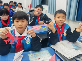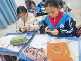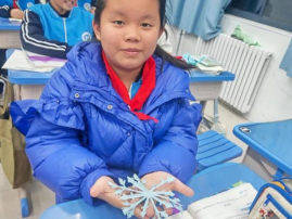 教室里,同学们手持彩纸与剪刀,在老师的指导下学习传统剪纸技艺。一双双专注的眼睛,一双双灵巧的手,剪刀与纸的轻语中,一份对冬日的想象,正在具象成形,原本平整的纸张渐渐绽开出六角晶莹的雪花。每一片雪花都独一无二,正如同学们对冬日不同的想象。剪纸不仅是手艺,更是心意的传递——当这些“雪花”贴在教室走廊展板上时,冬日校园顿时平添了几分喜庆与暖意。