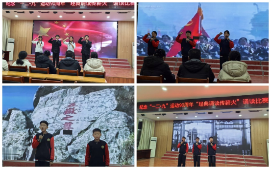 八年级“经典诵读传薪火”诵读比赛中,选手们以声传情、以情动人。《可爱的中国》《青春的呐喊》等经典篇目在同学们的演绎下,重现了“一二・九” 运动时期爱国学子的热血壮举;《铭记一二九,青春担使命》则结合新时代青年责任,抒发了“以青春之我,创建青春之国家”的豪情壮志。党员教师组成专业评审团,从主题立意、语言表达、情感传递等方面进行点评指导,让学生在诵读中深化对历史的理解,坚定理想信念。