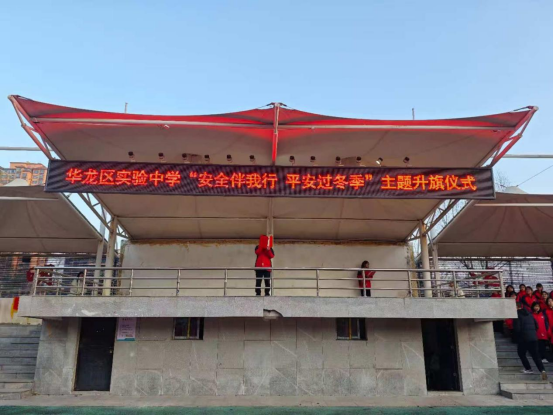 寒冬已至,气温持续走低,天气干燥寒冷,火灾、滑倒、一氧化碳中毒等冬季安全隐患进入高发期。为切实增强全体师生的安全防范意识,普及冬季安全知识,筑牢校园安全屏障,2025年12月15日,华龙区实验中学全体师生齐聚操场,隆重举行“安全伴我行,平安过冬季”主题升旗仪式。