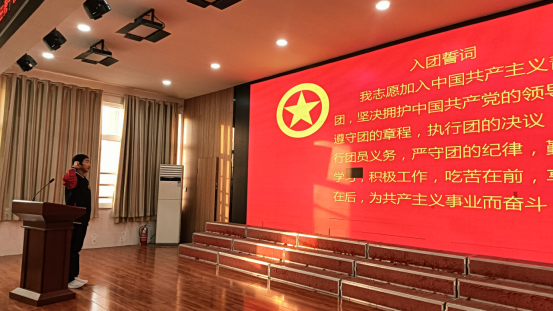 老团员代表肖定松同学分享了自身成长经历,鼓励新团员们坚定理想信念,主动担当作为,在共青团的旗帜下并肩奋斗,让青春在奉献中绽放光彩。