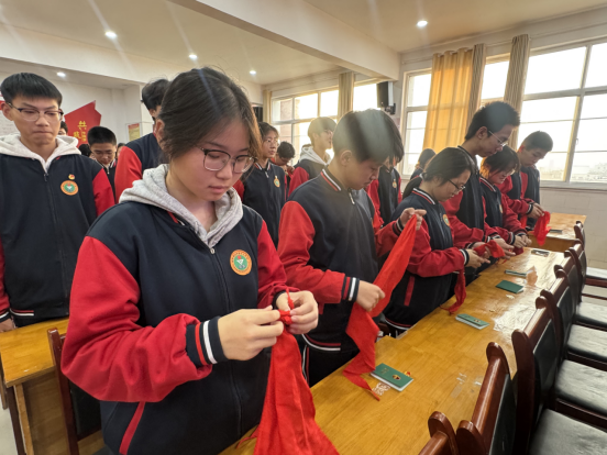 仪式在庄严的国歌声中拉开序幕,在离队仪式中,大队辅导员郭久婧老师带领新团员重温入队誓词,熟悉的誓言唤起青春记忆,也让新团员深刻感受到成长的责任与使命。紧接着,新团员们庄重解下伴随多年的红领巾并悉心珍藏,这一仪式不仅是对童年时光的告别,更是迈向青春新征程的象征,标志着他们将以更成熟的姿态肩负起青年的责任。