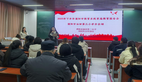 为进一步凝聚家校共育合力,提升家庭教育水平,助力孩子健康快乐成长,近日,濮阳市教育系统家庭教育报告会走进市油田第三小学,为家长们带来一场温暖而深刻的教育对话。本次报告会特邀家庭教育专家,与家长面对面交流,传递爱与智慧的教育理念。
