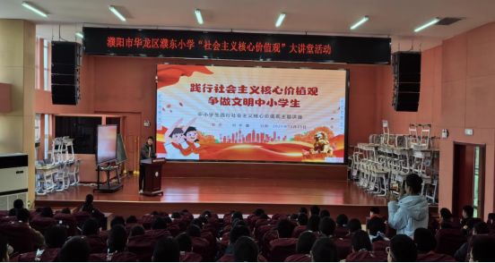 冬日暖阳洒满校园,报告厅内暖意融融。2025年12月25日,濮阳市华龙区濮东小学“社会主义核心价值观”大讲堂主题活动第一期正式开讲,200余名学生代表齐聚一堂,共同聆听刘怀鑫老师带来的精神盛宴。