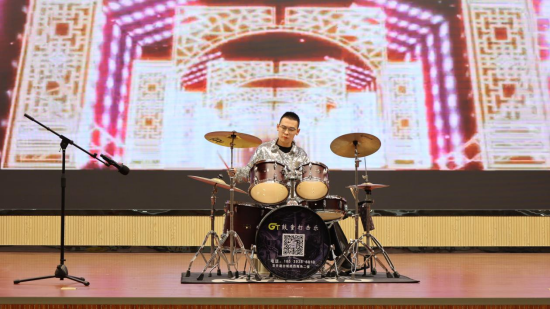 当培智部日常教学的点滴画面在屏幕上流淌,当“我们生而不同,必将与众不同”的铿锵宣言在会场回荡,培智部学生马豫东的架子鼓表演《粉墨人生》用激昂的鼓点瞬间点燃对精彩人生的美好期许。鼓点在他手下奔腾跳跃,敲击出生命的澎湃与不羁,他那全身心投入的热情,让每一个鼓点都充满了温度与力量,直击观众心灵。