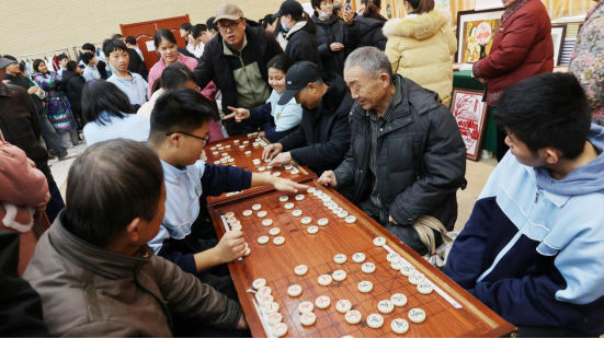 象棋友谊赛现场,学生与嘉宾两两对弈,他们沉着思考、果断落子,展现出超强的逻辑思维与专注力,是学校综合素质培养的生动写照。
