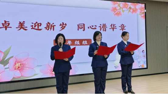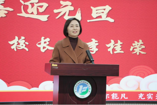 学校书记、校长李桂荣发表新年致辞,向全体教职工致以诚挚祝福与衷心感谢。她回顾2025年,学校以党建为引领深耕“卓美”教育,推进三大核心项目、深化五育融合、筑牢安全防线、凝聚家校社合力,硕果盈枝皆离不开教职工的辛勤付出。展望2026年,学校将坚守立德树人根本,持续推进教学改革、队伍建设等工作,寄语全体教职工初心如磐、同心笃行,共谱学校发展新篇。李书记温暖的话语鼓舞人心,为诗歌朗诵会奠定了温情又昂扬的基调。