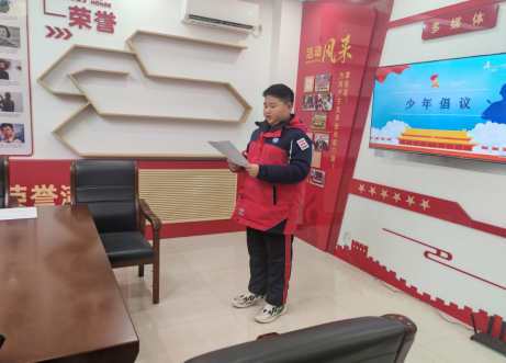 在学生代表靳绪峥的带领下,全体少先队员高举右拳,共同宣读《爱护公物倡议书》。大家从“爱护设施从我做起”“节约资源杜绝浪费”“监督提醒共同守护”三个方面庄严承诺,立志以实际行动践行倡议内容,用心守护美丽校园。