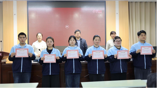 民主评议环节严格规范、公正透明。团员们认真填写《民主评议团员登记表》,按照“优秀、合格”两个等次,对每位团员的表现进行客观评价。工作人员统一回收统计后,现场宣读了“2025年度优秀团员”获奖名单,副校长张纪川与团委书记李淑莉为获奖同学颁发荣誉证书,掌声中满含着对先进典型的祝贺与敬意,也激发了全体团员争先创优的热情。