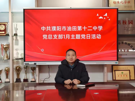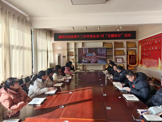 为深入领会新时代教育使命,引导全体党员将个人理想融入国家发展大局,濮阳市油田第十二中学党总支以“红韵铸魂,五育融慧”党建品牌为指引,依托“互联网+智慧党建”融合平台资源,于2026年1月12日在学校会议室组织开展了1月份“主题党日”活动。