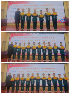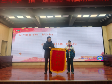 荣耀时刻,星光绽放。党总支副书记、校长赵民为七年级14班赵冰阳同学颁发“拾金不昧好少年”荣誉证书与锦旗。拾金不昧是中华民族的传统美德,赵冰阳同学以实际行动诠释了善良的真谛,用诚信之举点亮校园文明之光,为全体学子树立了可贵的榜样;副校长王丽为在七年级梦想演讲比赛中斩获佳绩的28名同学,分别颁发一、二、三等奖荣誉证书,他们以语言为翼,传递坚定信念,以表达为桥,绽放青春光彩,让梦想的声音在校园内外久久回荡;在区“奔跑吧·少年”体育赛事中,远动员们奋勇争先,在排球、篮球、田径等多个项目中勇夺四项荣誉,充分展现了油田十三中学子顽强拼搏、永不言弃的精神风貌。副校长葛中伟为获奖选手颁发荣誉证书。每一张证书都镌刻着汗水与坚持,每一次喝彩都是对奋斗青春的最高礼赞。