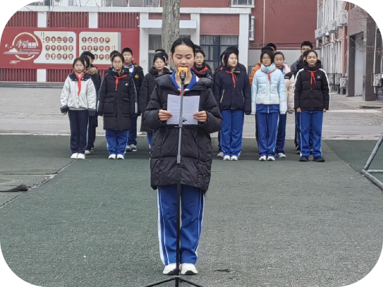 随后,顾子晨同学带来国旗下献词。他以少年视角诠释赤水精神的时代意义,向全校同学发出倡议:铭记革命先辈的奋斗历程,传承赤水精神的宝贵财富,在腊月的时光里总结过往、规划新程,以勤奋书写答卷,以拼搏诠释青春,让红色精神在新时代的校园中赓续传承,让少年之志在腊月的新程中向阳生长。