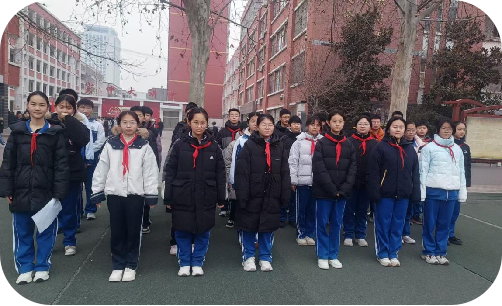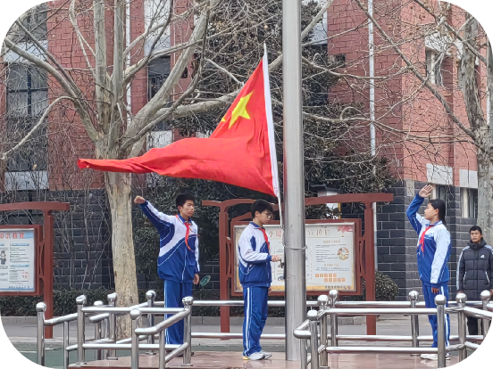 迎着清晨的晨光,全校师生列队整齐,庄严肃立。在激昂的《义勇军进行曲》中,五星红旗冉冉升起,全体师生行注目礼、齐唱国歌,炽热的爱国情怀在校园中激荡,这一抹鲜艳的中国红,也为腊月的校园增添了别样的庄重与温暖。