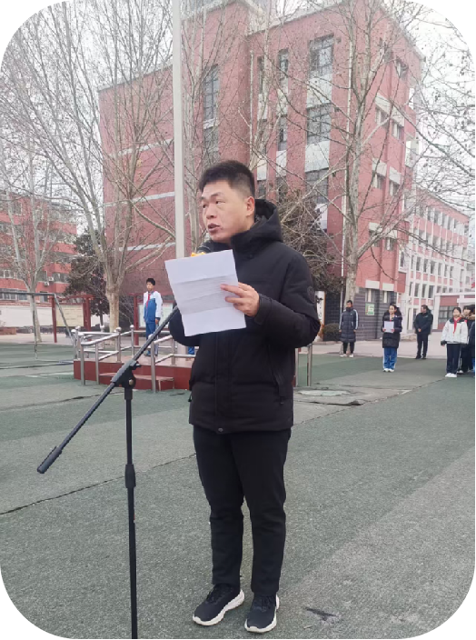 升旗仪式后,历史组张善广老师讲话。张老师以四渡赤水战役的历史为切入点,生动解读了赤水精神中实事求是、灵活应变、不畏艰险、敢于拼搏的核心内涵,将红军长征中攻坚克难的红色精神与同学们的学习生活相联结,勉励同学们以赤水精神为指引,在腊月的学习征程中正视困难、善思笃行,把红色基因融入青春成长,以坚定的信念和昂扬的姿态迎接新的挑战。