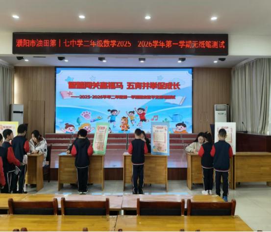 为落实“双减”政策与新课程评价改革要求,聚焦学生核心素养发展,2026年1月28日,濮阳市油田第十七中学二年级第一学期期末无纸笔综合测评活动在五楼大会议室及指定分区场地欢乐开赛。