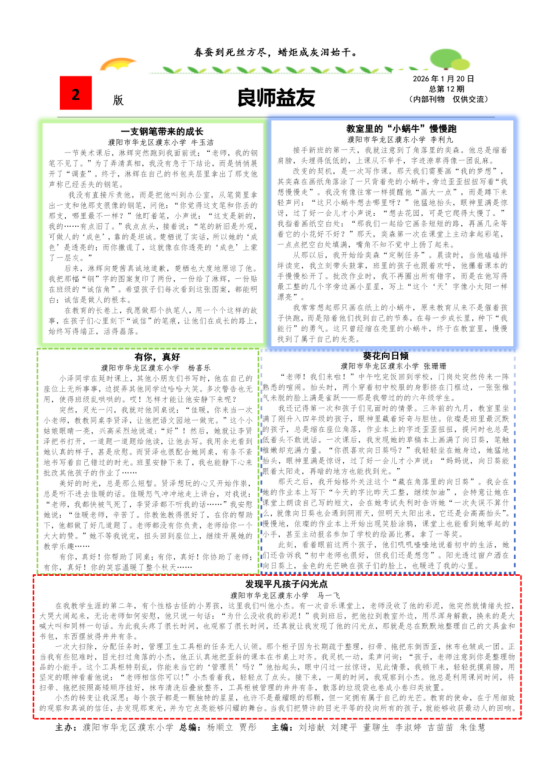 第二版的“良师益友”栏目里,全是暖到心底的育人故事:一支钢笔教会孩子诚信的重量,一只“小蜗牛”在老师的陪伴下慢慢找到自己的节奏,还有小老师帮忙管纪律、角落里的向日葵悄悄绽放……这些平凡又闪光的日常,藏着最动人的教育温度。