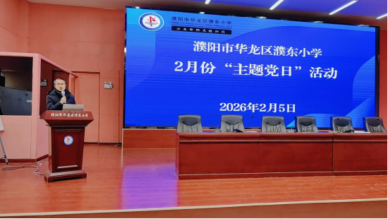 为深入学习贯彻党的重要精神,强化党员教师党性修养与师德师风建设,2月5日,濮东小学在学校报告厅召开2026年2月份主题党日活动。活动先由学校总支部书记杨顺立讲授专题廉政党课,随后组织全体党员开展集中学习与相关工作部署,全体党员及教职工参会。