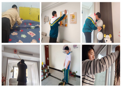 春节前夕,全校学生与家长一同开展迎新劳动,扫尘除垢、整理家居,以整洁清爽的环境迎接新春佳节,在劳动中体会“除旧布新”的民俗寓意。包饺子、做年夜饭、贴春联、剪窗花、挂灯笼……一项项充满年味的家庭活动,让孩子们在烟火气息中感受家的温暖与年的韵味。学生在亲手布置家园的过程中,进一步加深了对中华传统节日文化的理解与认同。