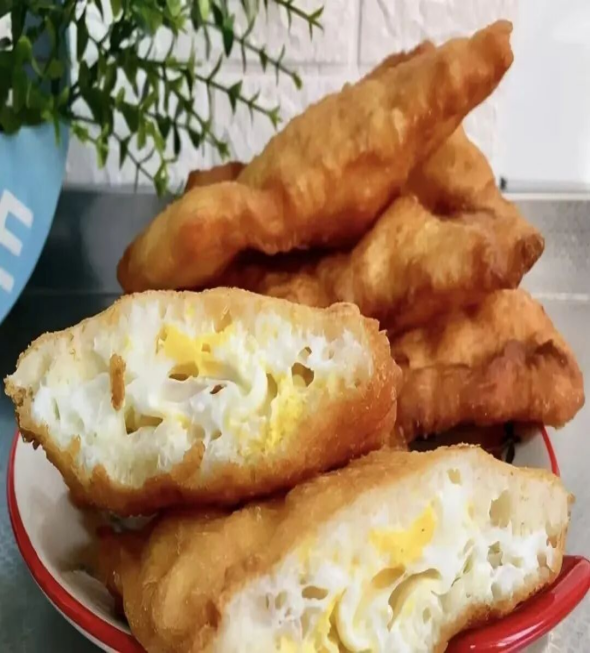 发酵面团擀成小圆片,填入红糖或豆沙馅,鸡蛋液封口,入锅炸至金黄。