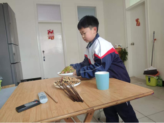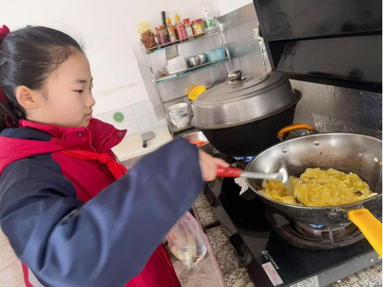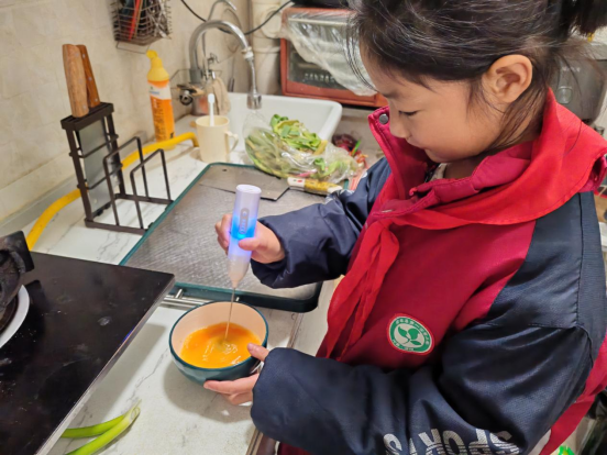 四年级的同学们系上围裙,走进厨房,在父母陪伴下开启烹饪之旅。择菜时的专注,清洗时的细致,翻炒时的小心,摆盘时的巧思——每一道菜肴虽简,却凝聚着对家人的深情。当亲手烹制的美味端上餐桌,劳动的喜悦在味蕾绽放,孩子们在烟火气中体悟“一粥一饭来之不易”的真谛,品味付出的甘甜。