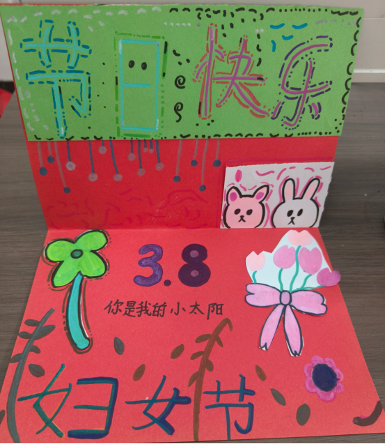 三年级的孩子们执起画笔,以卡纸为卷,为心中的“女神”精心制作贺卡。一笔一画,勾勒纯真的祝福;一字一句,流淌心底的深情。每一张贺卡都是独一无二的心意之作,将童真的敬意与对妈妈、老师及身边女性的感恩融为一体,成为春日里最温暖的风景。