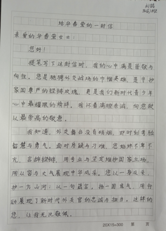 五年级的同学们将目光投向广阔天地,通过查阅史料、书信创作、视频录制,走近熠熠生辉的巾帼英雄。从革命先辈到时代楷模,从科研尖兵到平凡坚守,孩子们在追寻榜样的足迹中汲取精神力量,在字里行间倾诉由衷敬意,在镜头前表达真挚赞美。崇尚英雄、学习榜样的种子,在少年心中悄然生长,向阳而生。