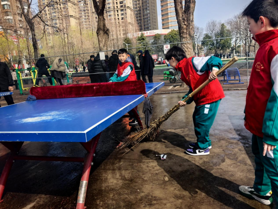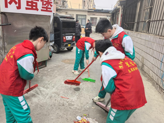 下午,小志愿者们转战社区,继续践行雷锋精神。在社区工作人员的引导下,同学们分成小组,开展卫生清扫和环境整治工作。大家不怕脏、不怕累,挥舞着扫帚清扫社区路面的落叶和杂物,用抹布擦拭楼道扶手,清理墙角的灰尘和杂物。针对社区内自行车、电动车乱停乱放的现象,小志愿者们齐心协力,将乱停的车辆一一摆放整齐,让社区道路变得畅通有序。同学们的身影穿梭在社区的各个角落,那抹忙碌的“志愿红”,成为了社区里最亮眼的风景线,赢得了社区居民的一致称赞。