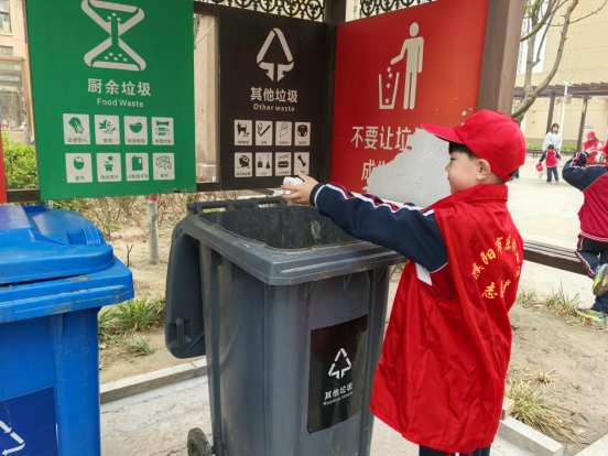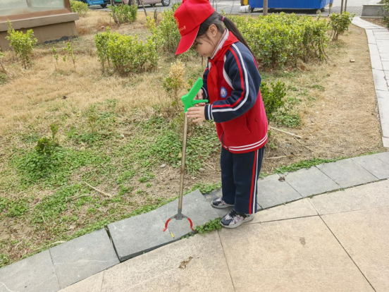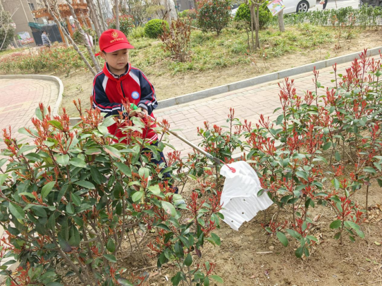 化身环境小卫士,只见他们手持清洁工具,认真捡拾小区里的纸屑、塑料袋等垃圾。小小的身影认真专注,不放过任何一个角落,用双手为家园换上整洁干净的新面貌。