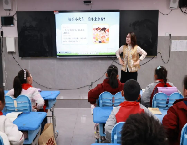 课堂伊始,于悦妈妈的亲切问候拉近了与孩子们的距离,一句“写字好看,作业本干干净净特别重要吗?”的提问,瞬间点燃了孩子们的参与热情,随后,趣味满满的拍拍操率先登场,“头头拍拍,肩肩拍拍,小腰小腰拍拍,小脚小脚拍拍”,简单的儿歌搭配整齐的动作,不仅活动了身体,更让课堂氛围变得轻松又欢乐。