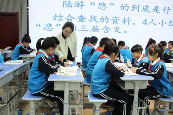 胡小娟老师带来的五年级语文上册《古诗三首·示儿》,紧扣古诗的情感脉搏,以情动人,以文化人。胡老师立足陆游这首绝笔诗的深沉爱国情怀,通过背景补充、资料整理、意象解读、小组研讨等环节,引导学生层层剥茧,深刻感悟诗人悲国家分裂、悲百姓疾苦、悲壮志难酬三层“悲”,对“王师北定中原日”的期盼以及“家祭无忘告乃翁”的嘱托。课堂上,胡老师注重情感的铺垫与升华,将个人情感与家国命运紧密相连,带领学生在品味语言文字的同时,受到强烈的情感冲击和深刻的思想启迪。胡老师还运用AI视频将时空穿越,让学生与陆游对话,将现代中国的发展讲于陆游听,使陆游的家国情怀如春雨般浸润学生心田,实现了语文工具性与人文性的高度统一,课堂氛围庄重而富有深度。