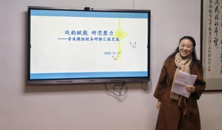 各教研组长立足学科特色,依次分享了富有成效的研修经验。政史地组在校长助理康艳红和组长李贞的带领下,深耕于“四叶草”名师工作坊的沃土。团队得益于“问题导向、跨科联动”的教研模式与扎实的“四遍磨课”流程,营造出教师共享、教研共创、团队共进的蓬勃生态。语文教研组长岳彩燕系统阐述了本学期教研工作的实施路径。教研组以“大阅读”课程体系为核心载体,分年级推进“经典润笔”“读书砺智”“慧启经典”主题阅读活动,以“一课一研 一课一思”、先行课为载体扎根课堂,依托尔雅工作坊共读新课标,深化课程理解,借助优质课平台探索素养导向教学新范式。音美微组在教研组长崔秀荣的带领下深耕戏曲校本课程,通过"需求导向、跨界融合"的研修模式,实现传统文化与现代教育的有机衔接。