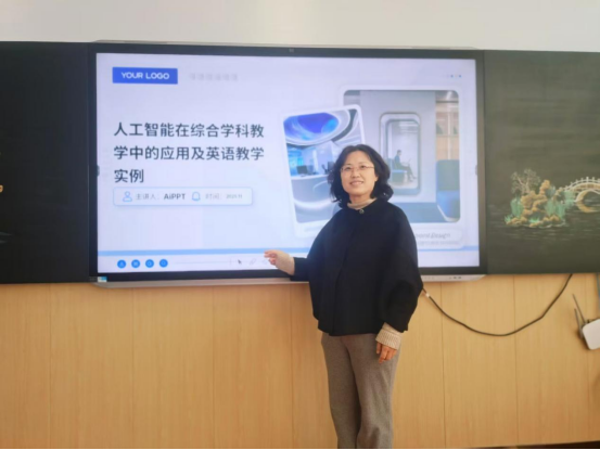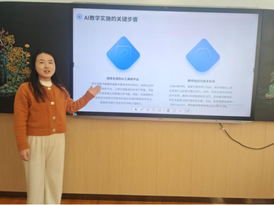 活动中,郑丽红老师通过屏幕实操演示,直观呈现AI工具的教学应用场景。从生成式AI助力历史场景创意创作、数据分析工具支撑环境科学项目研究,到智能批改系统提升作文反馈效率,清晰展现AI如何为教师减负增效——将教师从机械性工作中解放,聚焦高阶教学设计与学生情感关怀,让教学重心回归育人本质。